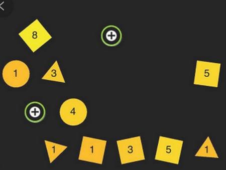 8、发射小球的时候要往方块密集的区域去发射,因为小球是可以弹动的,弹到其它的形状也算分数。
