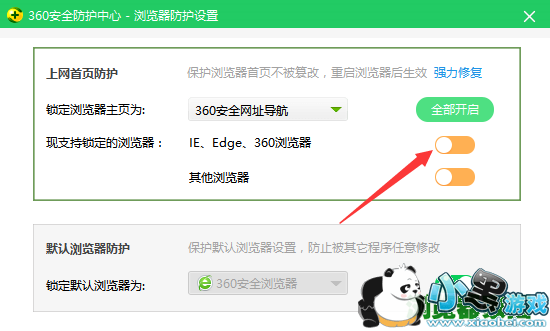 3、如果你的电脑上安装了360安全卫士,那主页很可能被默认锁定了,点击修改主页时会弹出安全防护窗口,将主页保护后再点击“修改主页”即可。
