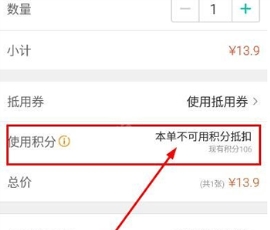 2、可以看到【使用积分】选择,但是本单并不支持积分支付。