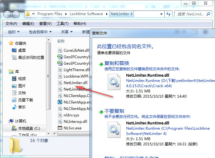 3.打开crack文件夹,根据自己系统选择Crack x64或Crack x64文件夹,将其中的NetLimiter.Runtime.dll替换NetLimiter