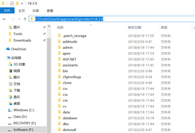 如"F:/Tools/Oracle/app/oracle/product/18.3.0"
