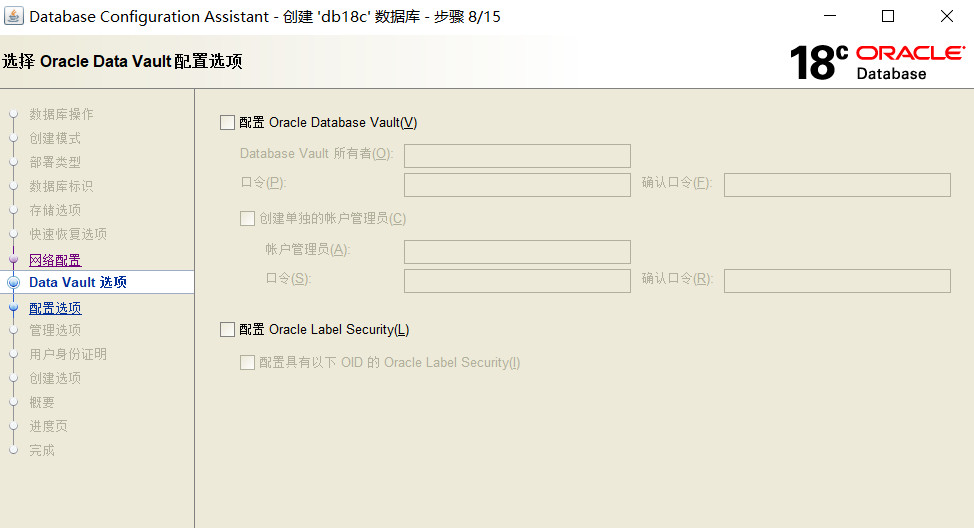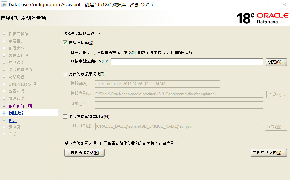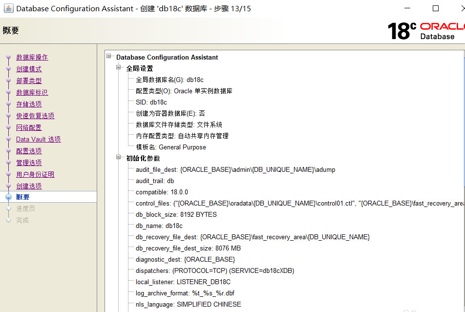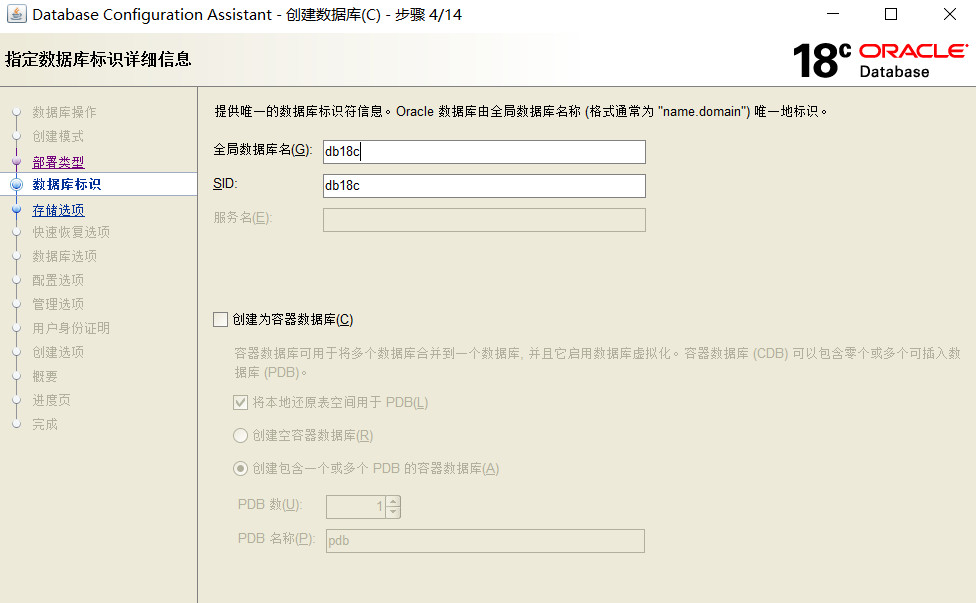 4、全局数据库名和SID均填写为"db18c",取消选择"创建为容器数据库"