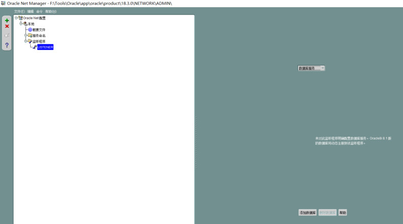 3、选中新建的监听程序,点击"添加地址"->"数据库服务"->"添加数据库"