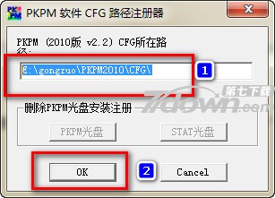 9.首先运行一下安装目录下的CFG/RegPkPm.exe.路径直接填写完整安装路径。例如小编路径为E:/gongzuo/PKPM2010/CFG/