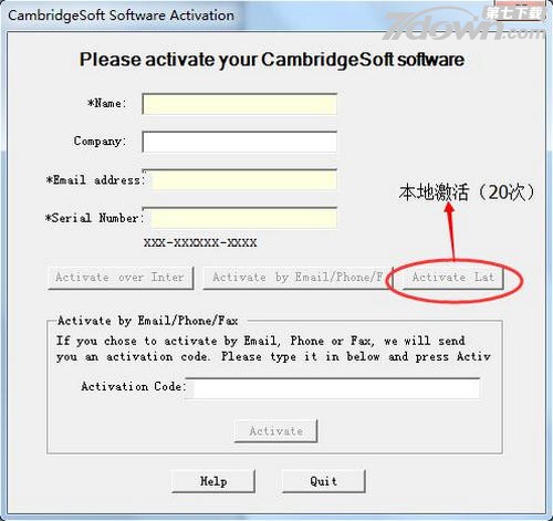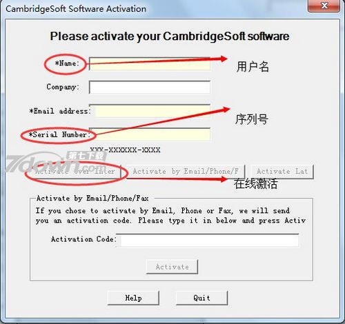 然后在CambridgeSoft软件激活窗口填入您的用户名和激活码。
