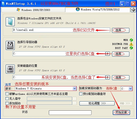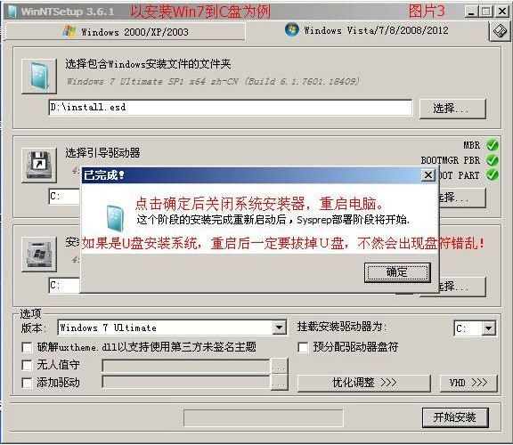 第三步:以上操作完成之后,我们点击开始安装即可完成达到我们硬盘安装win7原版操作
