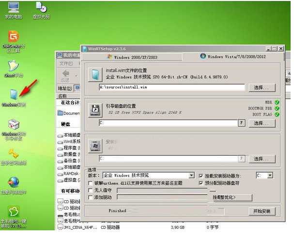 第二步:进入PE系统,在桌面找到并运行WinNTSetup安装器,点击Windows Vista/7/8/2008/2012选项。