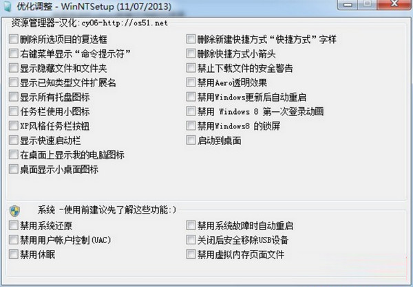 安装之前可以勾选【优化调整】按钮进行一些系统优化,让安装出来的系统更加顺畅