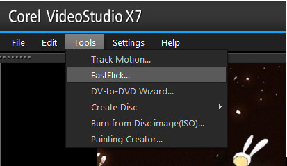 1、打开会声会影,选择工具栏“Tools”-“FastFlick”;