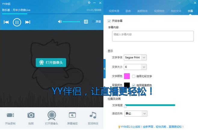 YY伴侣软件歌词显示方式,YY伴侣软件的歌词秀现在分为3个部分