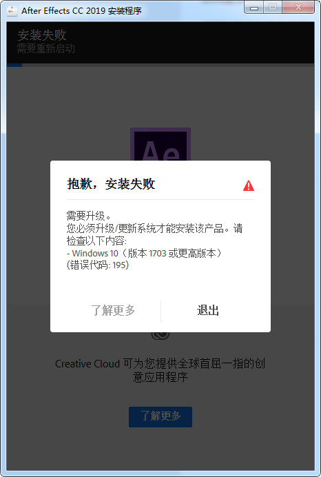 是的你没有看错,Adobe CC 2019 Win7无法安装