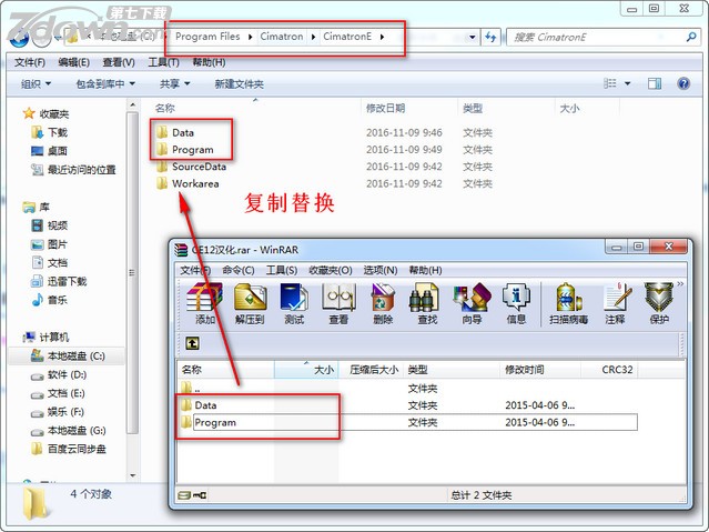 然后将汉化文件“Program”和“Data”复制到软件CimatronE目录下覆盖源文件即可。