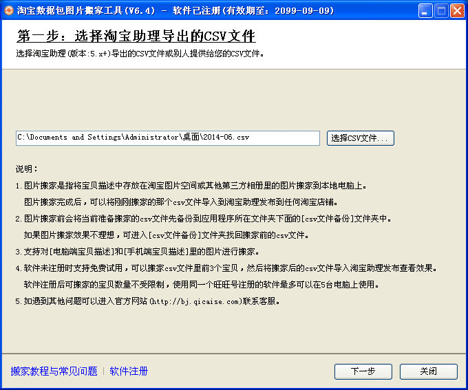 图片搬迁完成后,可以将刚刚搬迁的那个csv文件导入到淘宝助理发布到任何淘宝店肆。