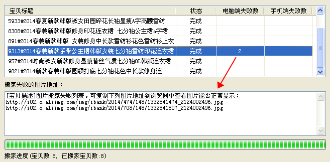 (2) 图片搬家失败后,会在软件中显示搬家失败的相关图片地址,你可以把图片地址复制到浏览器里打开,检查一下图片能否在浏览器中正常显示: