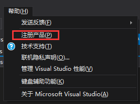 启动VS之后,在菜单栏有个帮助的下拉框,选择 注册产品,然后输入上方对应版本的激活码。OK~