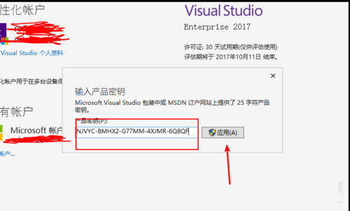 在弹出的窗口输入密钥,点击”应用"。