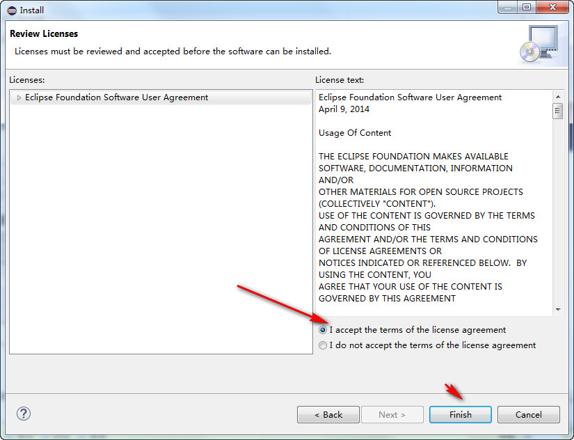 点击那个 I accept the……,然后点击Finish,如下图所示: