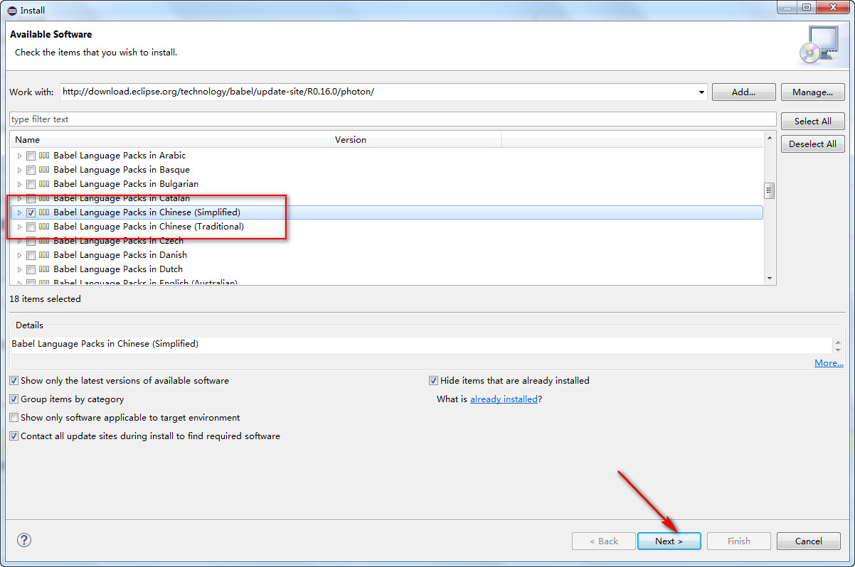 Eclipse官网提供了一个babel项目,它提供了Eclipse的各国语言包,我们要汉化的话就找到对应的中文语言包安装就OK。