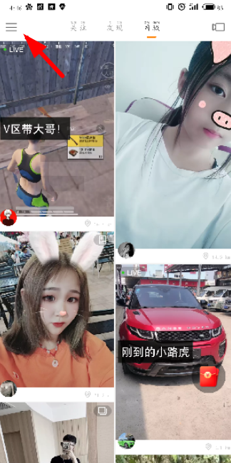 1、点击打开快手极速版,点击页面左上角的三横图。