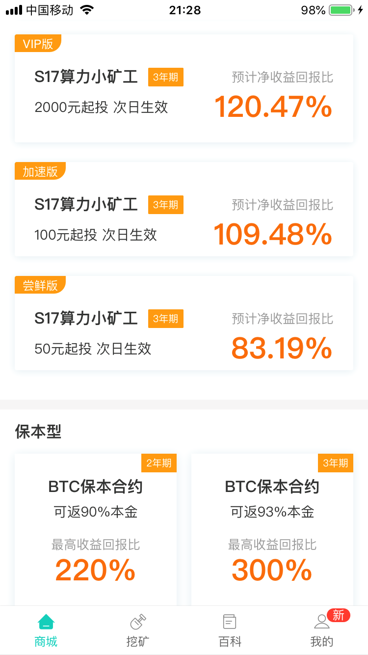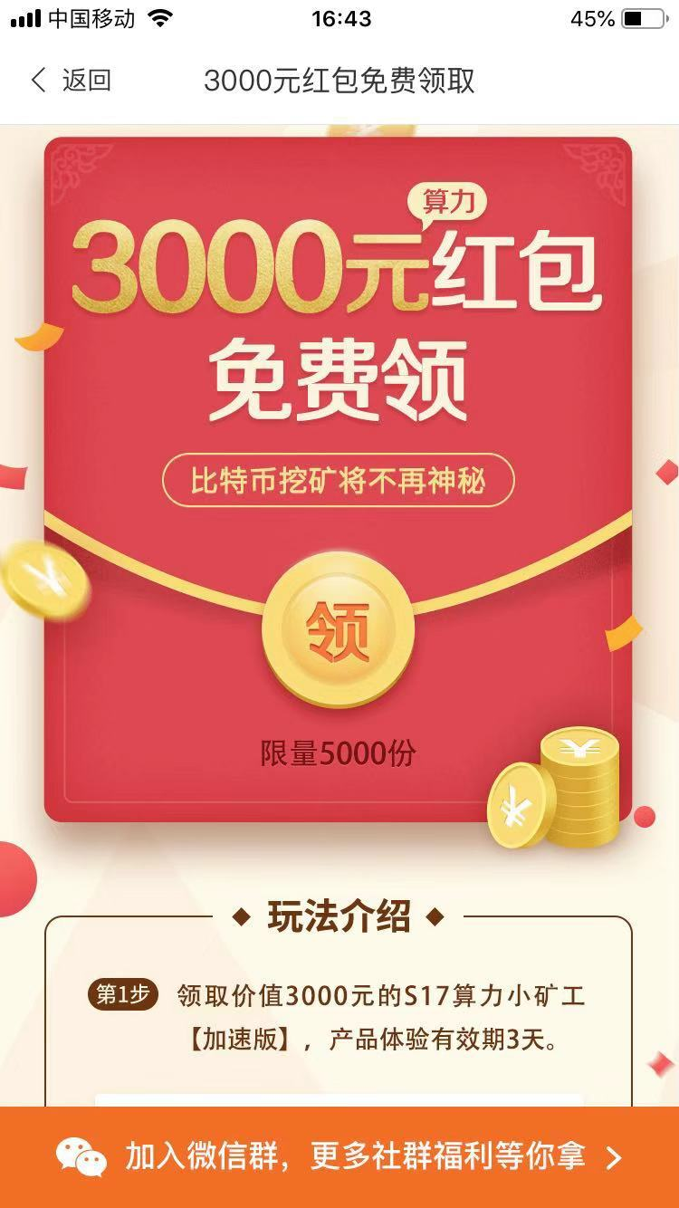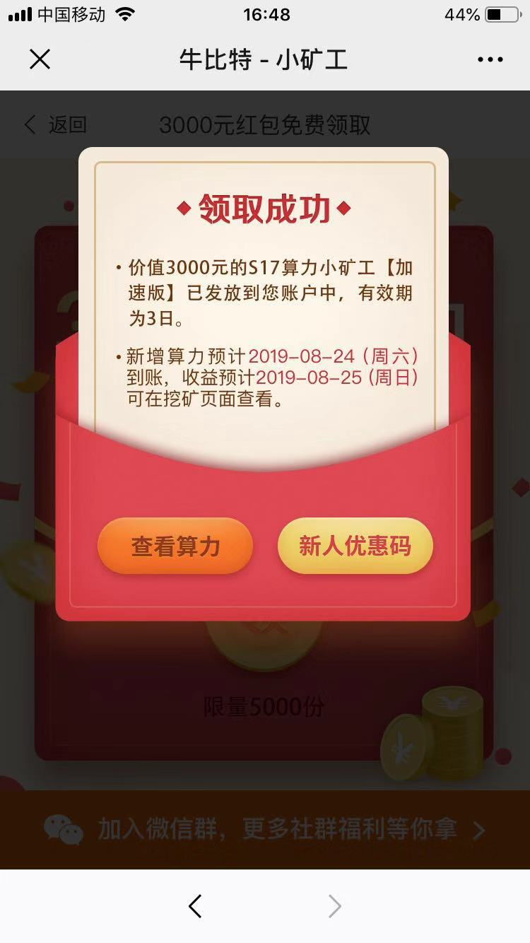 值得一提的是,牛比特小矿工推出了「50 元尝鲜」活动,用户只要花50 元就可以购买3 年期的S17 矿机0.0733THS 算力,让用户可以快速体验云挖矿活动。