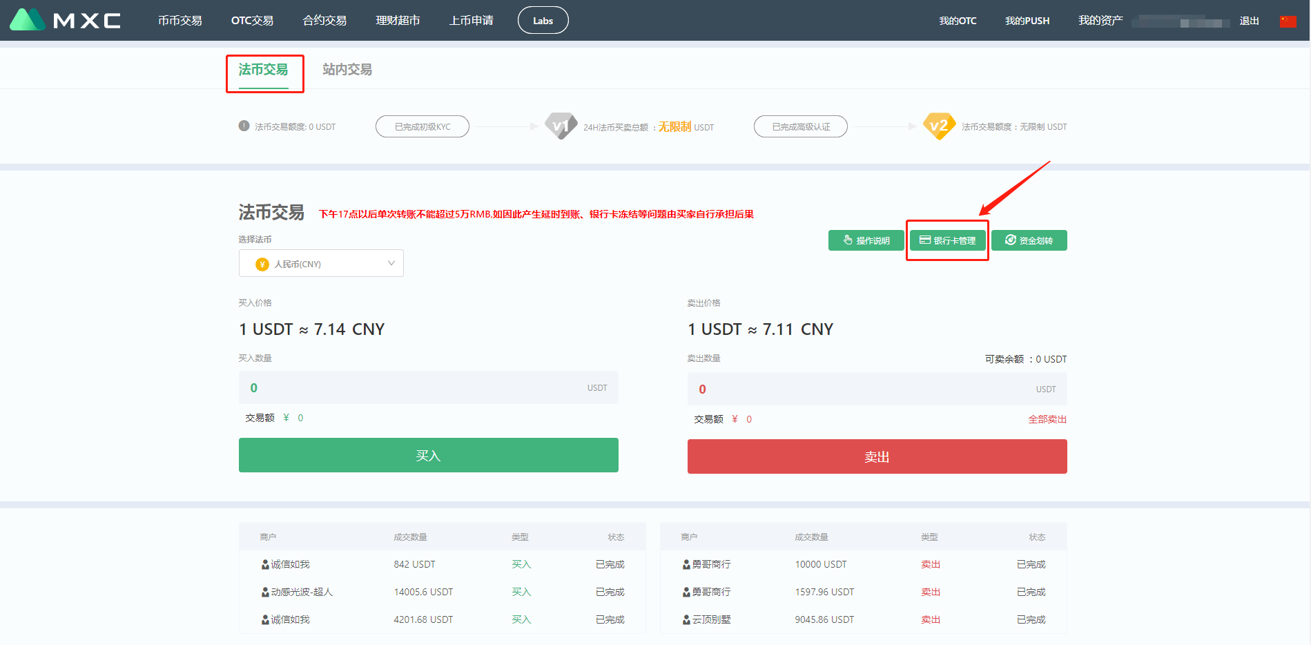 第三步:OTC交易(即入金,使用RMB购买数字货币)