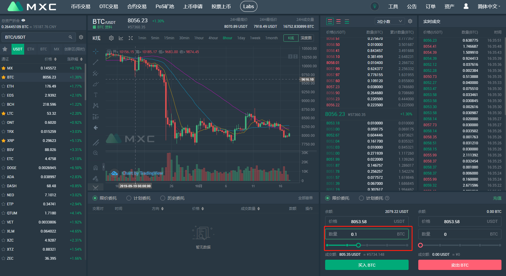 4. 输入想要购买的数量,选择“买入BTC”,即完成购买