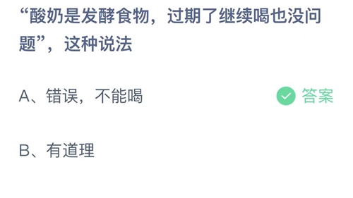 支付宝蚂蚁庄园2022年9月27日答案最新,今天更新的题目是:“酸奶是发酵食物,过期了继续喝也没问题,这种说法?”,是不是还有很多小伙伴们不清楚正确的答案呢?大家一起来看看吧!