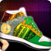 <>操作说明:鼠标操作鼠标左键 。点击画笔然后选择一边的图标和颜色,点击鞋子上色,然后拖动其它物品进行装饰,以及选择鞋子的鞋带及缝线颜色,按ok完成。>