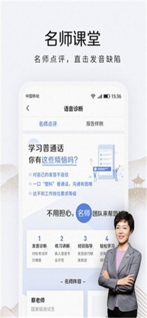 4.推荐课程:综合分析您在模拟测试和学习过程中的发音缺陷和薄弱点,为您推荐量身定制的训练课程,快速提高普通话发音。