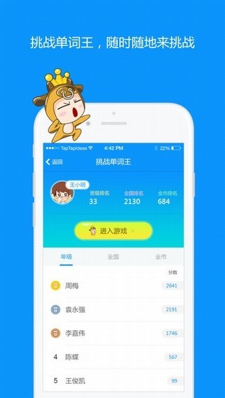 1.挑战单词王上线手机,随时随地来挑战~