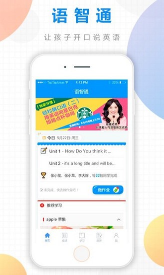 语智通手机版是一款手机英语学习app平台,语智通pp同步中小学教学,为中小学生提供更具趣味性的学习教程,提供更专业、实用的英语学习技能。实现语言学习过程中的作业布置、批改、纠错以及成绩统计等,让老师和家长都能轻松快捷的掌握学生的语言学习情况。