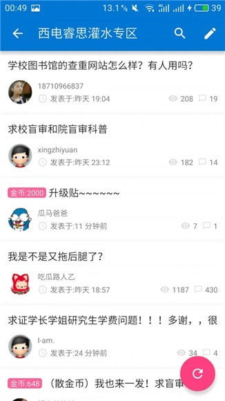 1、西电学子的移动论坛,不管你是在校生还是外校生都可使用本客户端;