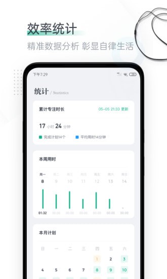 统计每一个计划与专注时间,记录自己点滴成长历程,每日进步看得见;