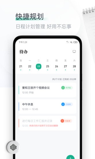 记录每天工作计划、学习任务与日常生活等,直观日历视图方便查看计划安排,随走随记,让生活、工作、学习变得管理有序;