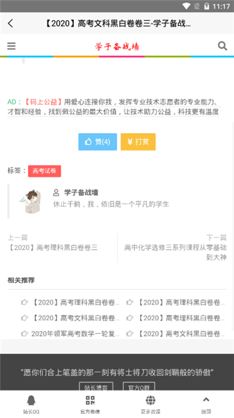 学子备战墙app是一款学习教育类软件,这里有千万学子分享的资源视频,复习资料,给你提供的一个免费存信息的地方,另外还有交流社区,快来下载试试吧!