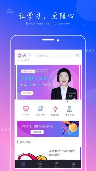 学天下app是一款专业的在线学习教育的手机应用软件,精选了全国几十所重点大学课程,还有上百所重点知名中学课程,线上就可以对教育培训机构课程进行订购,用户线上线下都可以进行课程学习,随时随地学习,有需要的朋友快来下载吧!