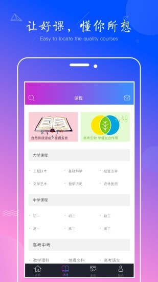 提供各种中学课程、高考中考课程、大学课程的课程内容,丰富课程;