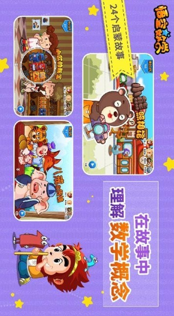 设置24个学习单元,每一个单元包含一个相关的启蒙故事,通过故事建立孩子对学习概念的欲认知。然后进行思维训练游戏,每一个游戏精心设计有趣合理场景小故事,帮助孩子理解题目场景与题意,摆脱枯燥的单纯做题目,提高解决问题能力。产品单元设计由浅入深,根据孩子的年龄和认知程度进行划分。