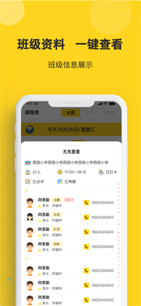 2、【标签化考勤】通过标签为学生快速考勤,查看每节课到课学生信息,迅速发现考勤异常并及时联系处理