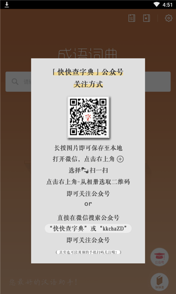 成语字典是快快查推出的一款正版授权、不收费、离线的汉语词典应用。