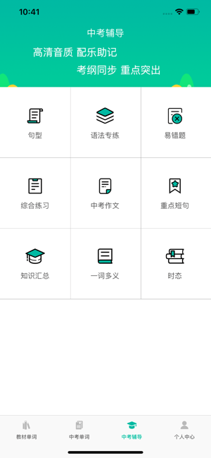 与最新的初中英语教材同步,与中考大纲同步。配有高清的真人发音,可跟读、可点读。每个单元的知识点和重要语法、重点词汇等,都有配套的详细讲解。