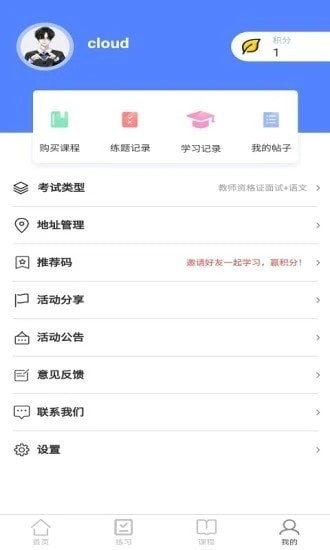 考试类型,自选考试类型,根据用户选择的考试类型,自动推送相关的科目课程;