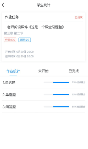 【作业页签】,“运筹”您的课堂作业和课后作业发布的时间和统计。