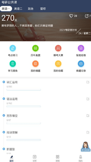 3.题库练习增加每日一练,随机匹配十道精髓真题;还可定制个性化私人专享智能练习