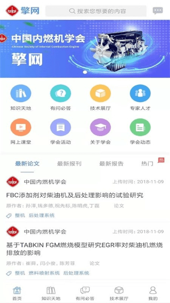 擎网是一款非常不错的手机在线学习交流的应用软件,擎网app是中国内燃机学会网络信息平台,用户可在线学习、搜索、分享知识、查看新闻、专利等。