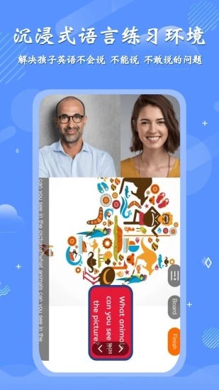 精选全球外籍一对一英语家教,课上学,课后练,练中学,用时会。与外教线上1对1练习,内容紧贴国内学校教材和日常交流会话,让孩子在英语对话中提升语言理解表达能力。