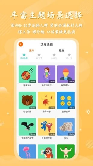 1.选择与适合自己的难度主题,包含教材及日常生活主题;
