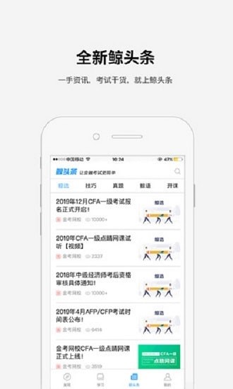 鲸考网校app下载,一款专注金融领域的考证备考学习平台,用户通过鲸考网校app可以随时听名师讲座,专家授课指导,还有丰富的题库在线刷不停,欢迎下载。