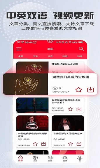 TEDapp是一款专门提供各类演讲视频的软件,不仅语言种类丰富,还有中文互译,内容无所不包,还可查看每个演讲的关联视频,方便快捷。