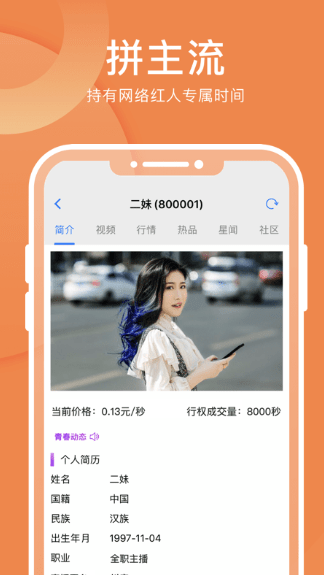 网络知名人士、体育教练、网络明星艺人等均可通过秒啊红人发行个人专属时间,实现个人时间价值的多场景应用。